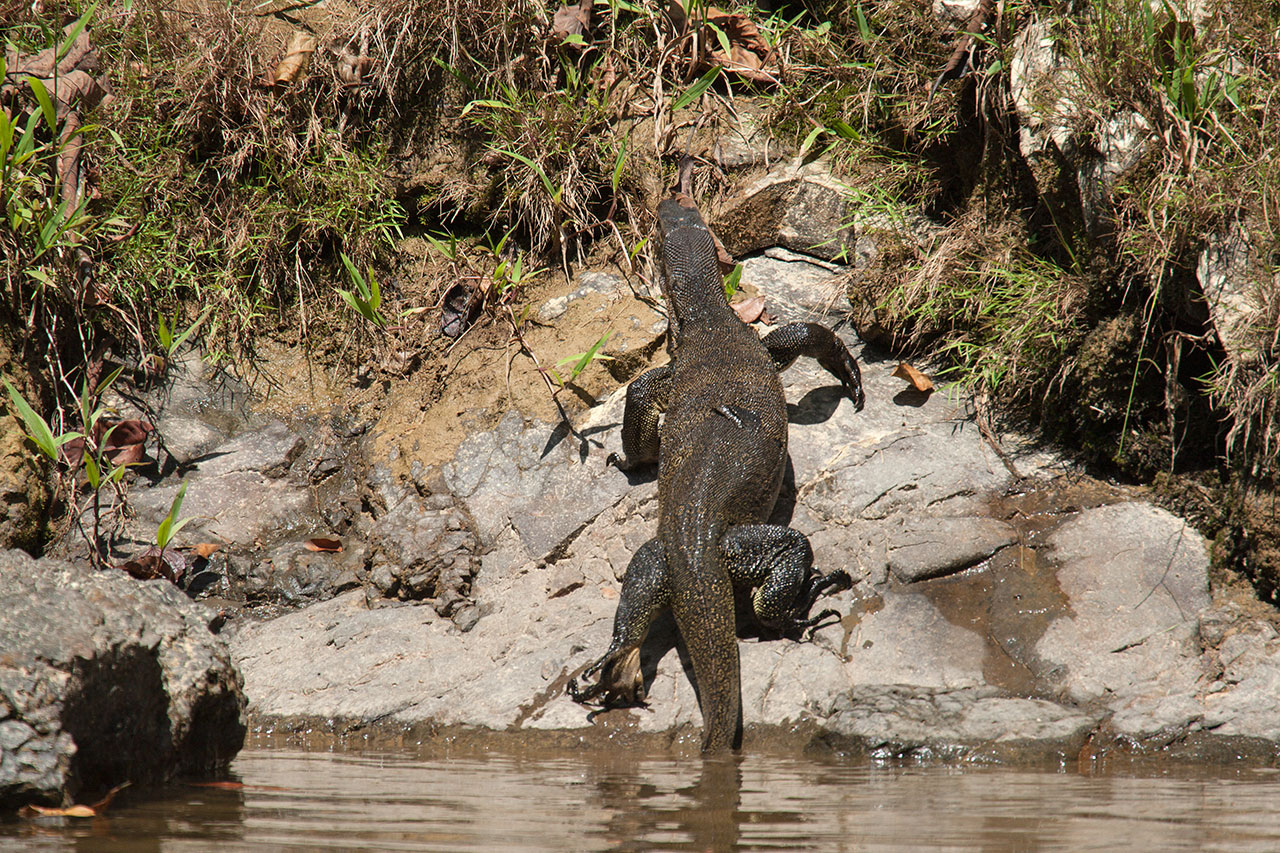 The first morning of exploration included a trip in a dugout canoe across a swift moving crystal-clear rain forest stream. Once to the other side my guide educated me about Orangutans and what foods are eatable as we forged through the forest. Sumatran Orangutans have predators so they are arboreal and rarely travel on the rain forest floor.